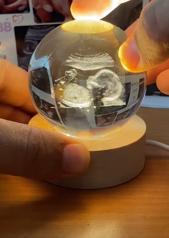 I had my baby’s ultrasound put inside this sphere. The first time I turned it on I just sat there crying. It feels like she’s already here with me. Having her name on the wooden base makes it even more personal.
