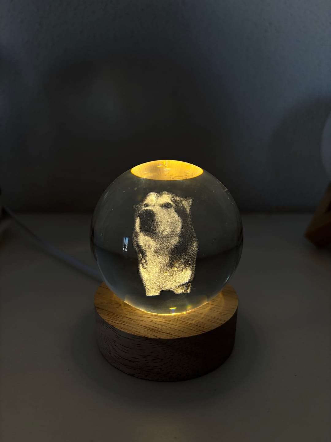 At first I was sceptical because it looked too good to be true, but the sphere amazed me. The glow is beautiful, the photo is clear, and the engraving makes it feel so personal.